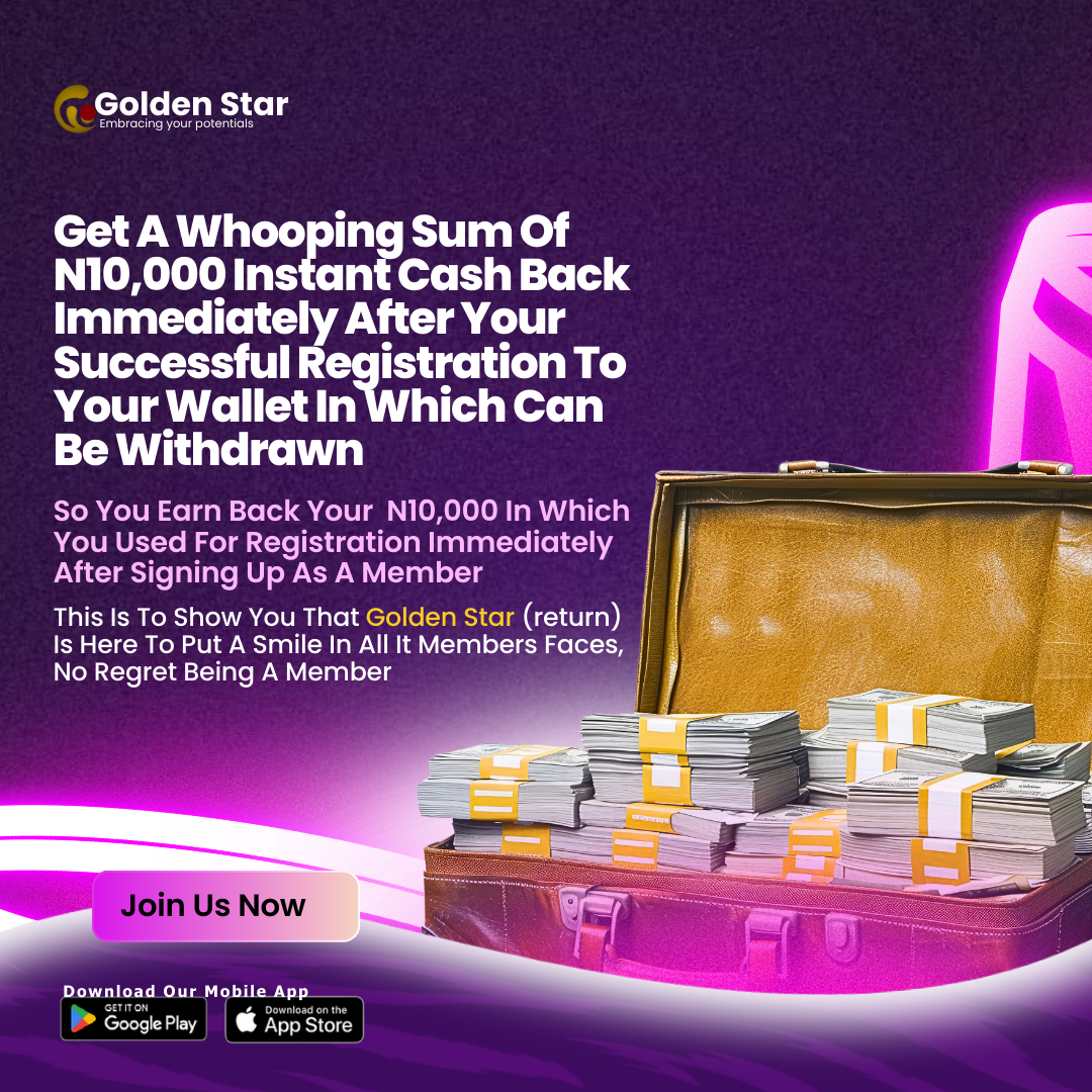 That’s right! The moment you sign up as a member, you will earn back the N10,000 registration fee, giving you a fantastic head start in our community. We believe in creating value for our members right from the beginning, and this cashback is our way of welcoming you to the Golden Star family.